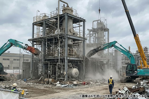 アスベスト(石綿)除去、煙突・塔・プラントなどの大規模構造物の解体、高所や狭小地といった施工条件の厳しい現場にも対応可能。専門知識と必要な資格を備えたスタッフが、安全管理を徹底し、法令を遵守した確実な施工を行います。
