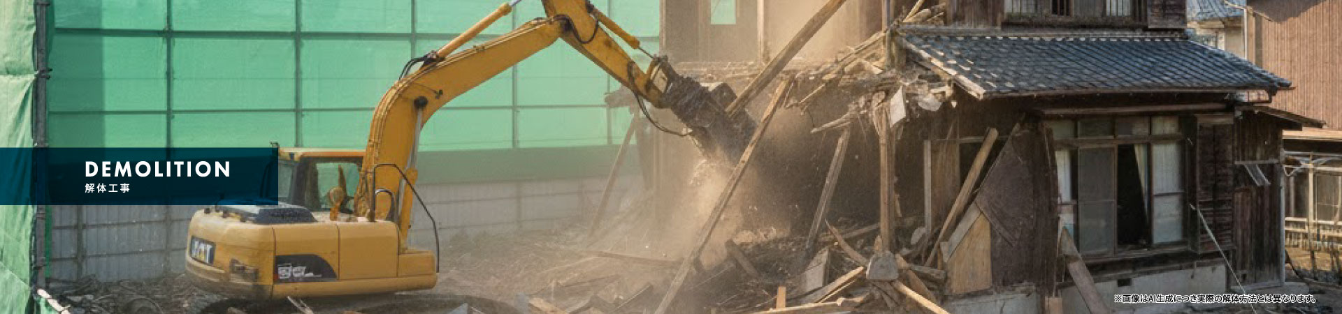 家屋・ビル・工場など各種建物の解体工事を、迅速かつ的確に行います。木造・鉄骨造・鉄筋コンクリート(RC)造など構造を問わず対応可能。現地調査から工程計画までをスピーディーに進行し、無駄のない施工で工期短縮を実現します。